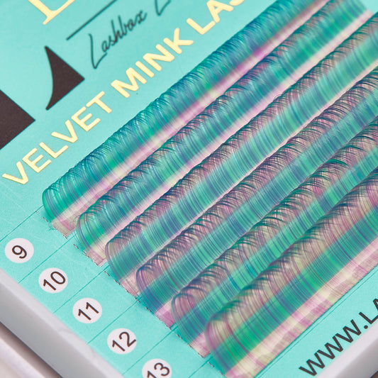 Velvet Mink 0.05 Lashes Mixed Tray - Blue / Green Tip Ombre